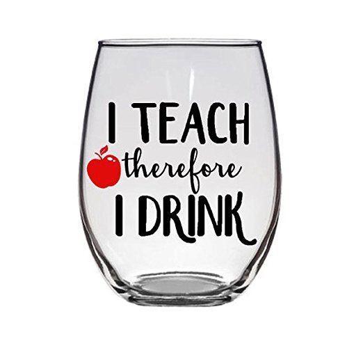 Amazon Com I Teach Therefore I Drink Funny 15oz Wine Stemless Glass Fun Unique Gift Idea For Teacher Professor Mentor Or Tutor Great Present For Teacher Appreciation Day From